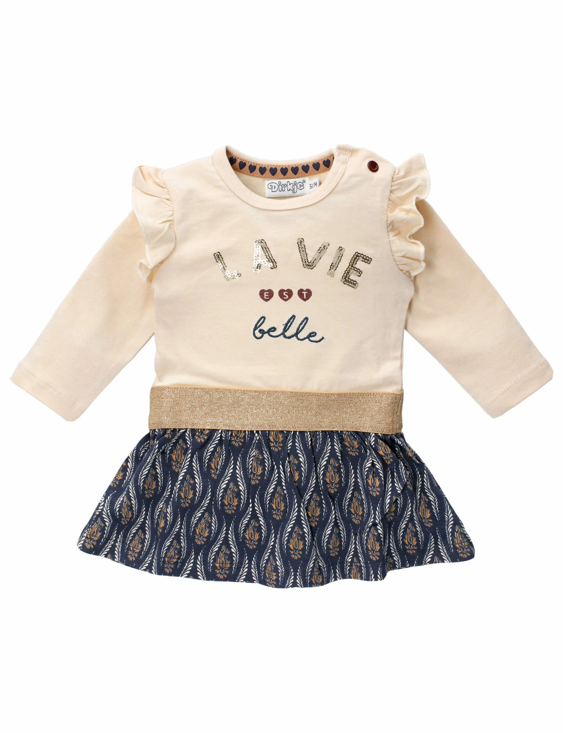 Mit diesem Set ist deine kleine Maus ideal für die alle Jahreszeiten ausgestattet! Die Kombination aus Kleid und niedlicher Leggings ist dabei ebenso modern wie selten – hierin wird dein kleiner Liebling allen anderen die Show stehlen! Die bezaubernden Rüschen und der schicke Schriftzug runden das Ganze noch ab. (07776-001)