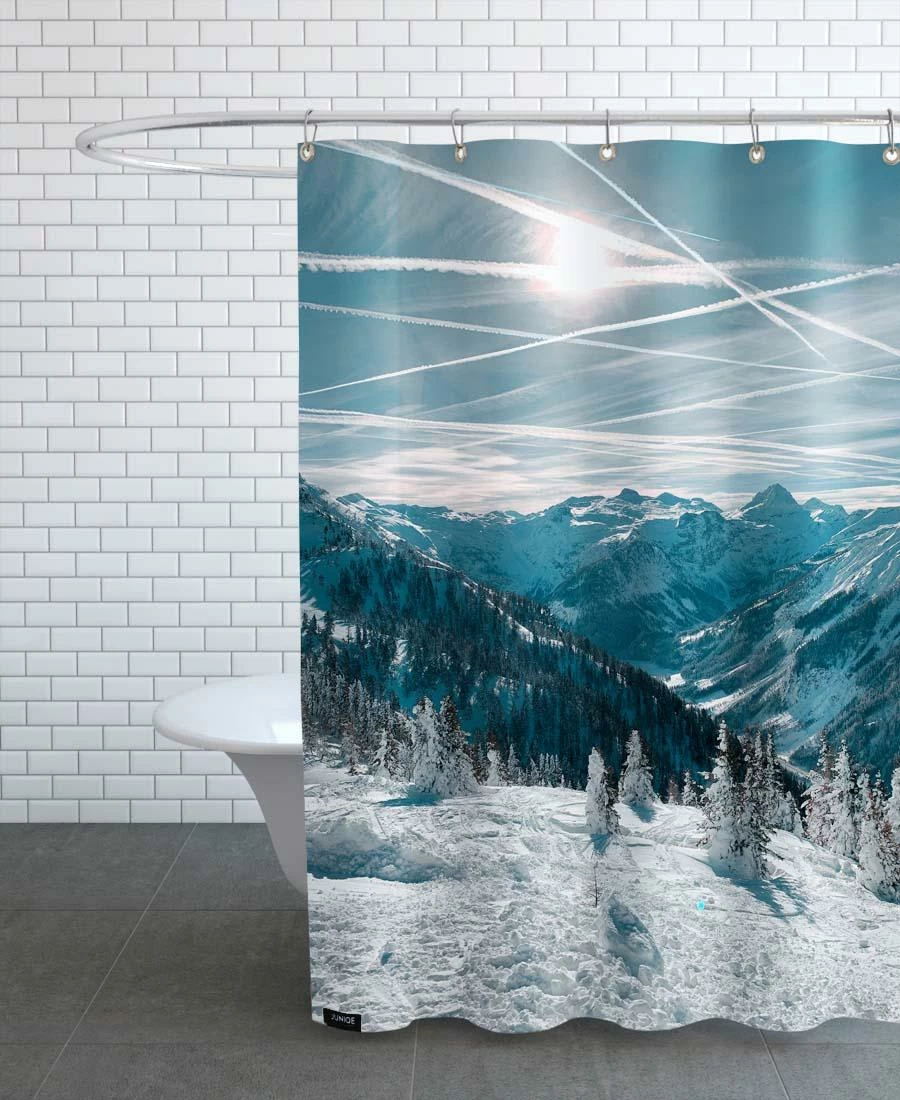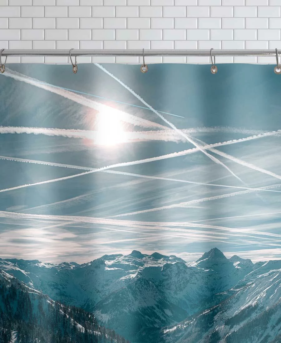 Wasserabweisender Duschvorhang aus Polyester mit einseitigem Motivdruck. Fadenvernäht. Mit vernickelten, rostfreien Metallösen. Aufhängung (Duschvorhangringe) nicht inklusive.