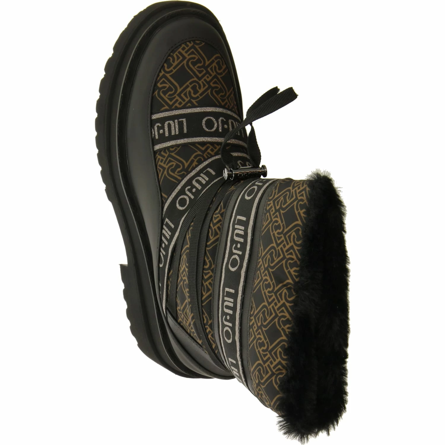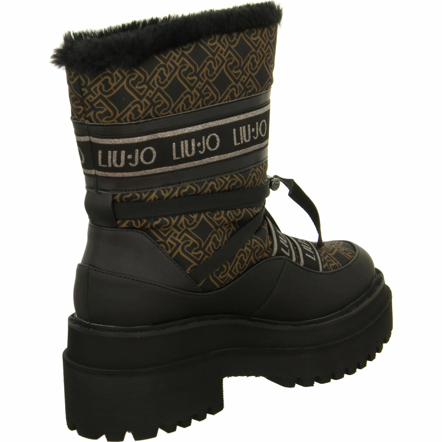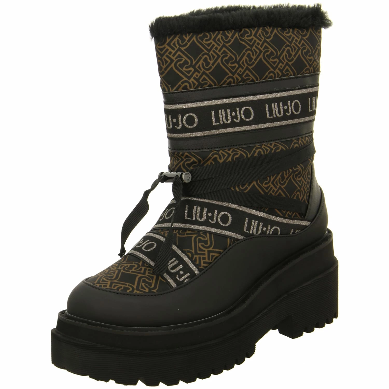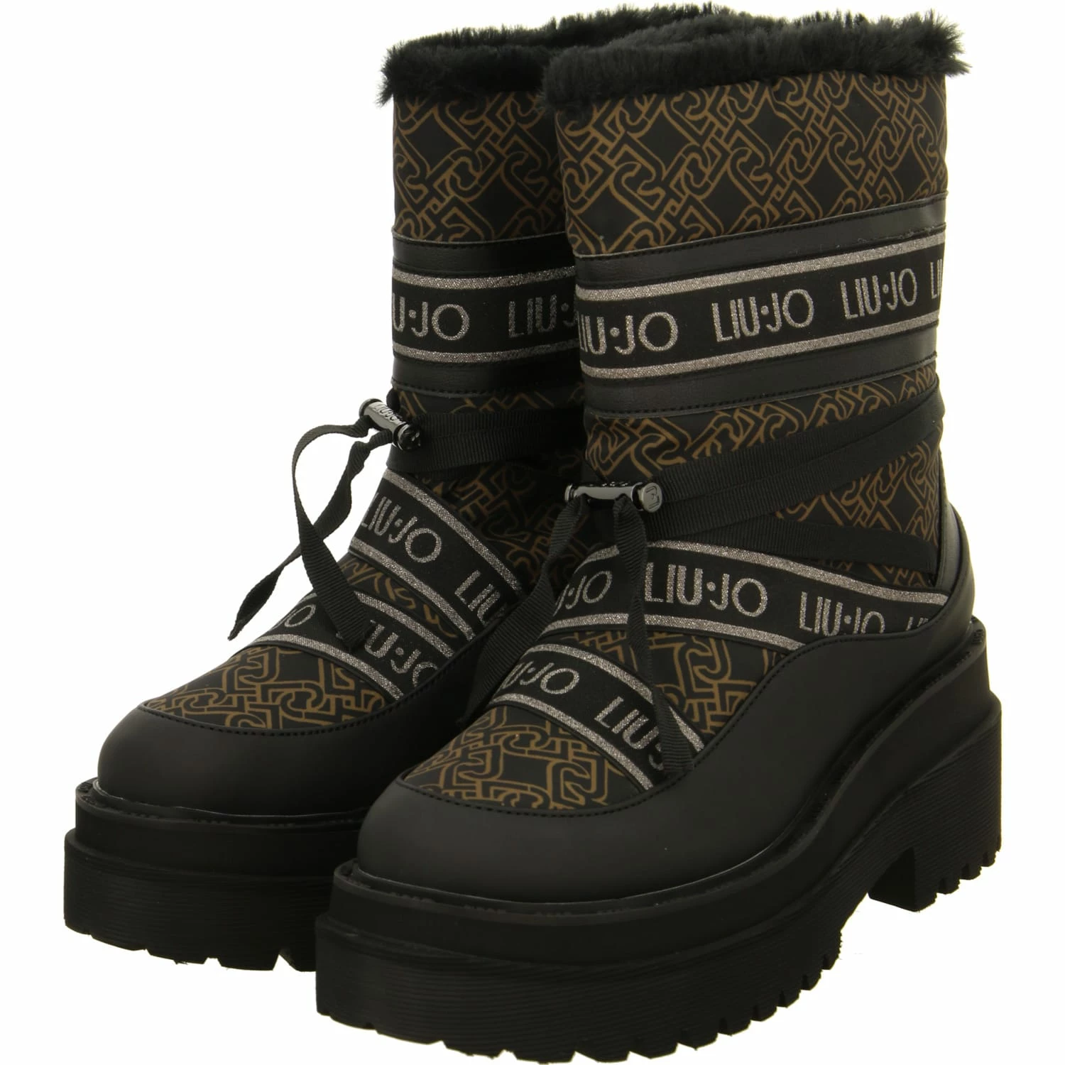 Liu Jo Damen Stiefeletten/ Winter Boots Braun/Schwarz Synthetik-Textil-Mix – Zierriemen mit Schnellverschluss – gelabelt – Warmfutter – verstärkter Zehen- und Fersenbereich – gepolsterte Decksohle – ca. 4 cm Blockabsatz