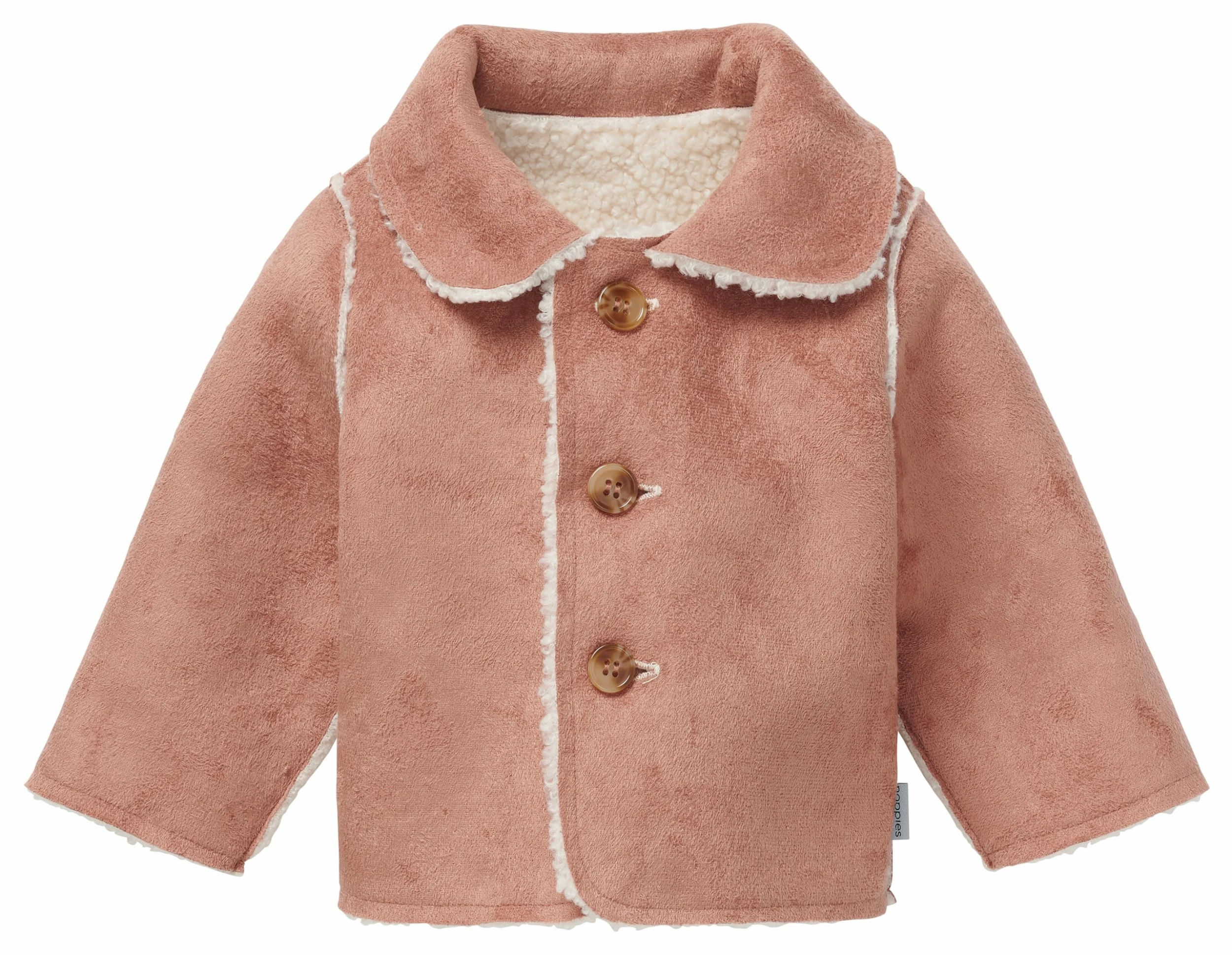 Trendiges Baby? Dann ist diese Jacke, die beidseitig getragen werden kann, ein Muss. Die eine Seite hat eine Wildlederoptik und die andere ist aus weichem Teddy, was gefällt Ihnen am besten?Die Jacke Lucena von Noppies Baby hat Knöpfe und einen Kragen. Es ist wunderbar weich und warm und kann mit allem kombiniert werden!